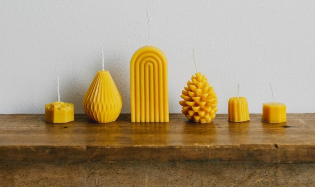 県内で採取された蜜蝋を使用したキャンドルで