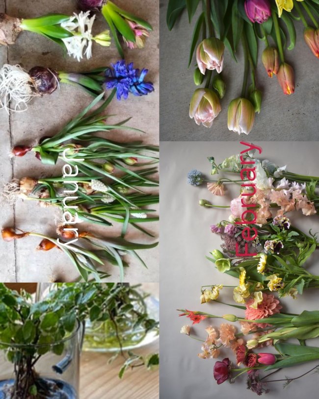 1月は球根のお花や苔、グリーンを使った