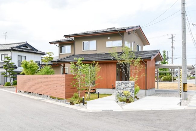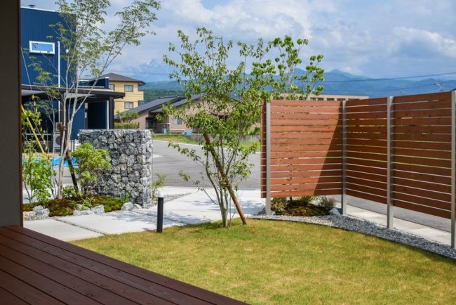 ウッドデッキからは走り回れるお庭と眺めるお庭を体感できます。
