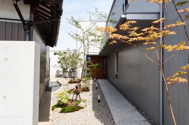アプローチ工事、ハイブリックボーダー敷、石敷、植栽