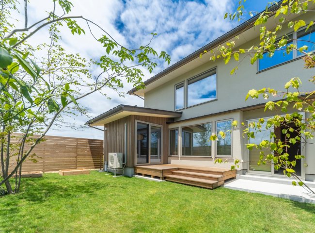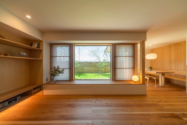 お家に入った瞬間、お庭のモミジが季節をお知らせしてくれ、