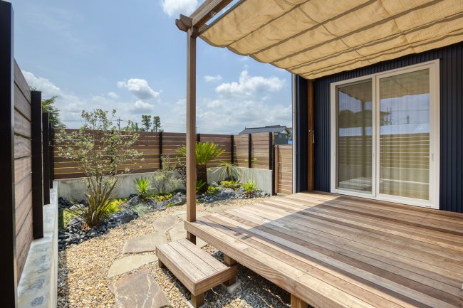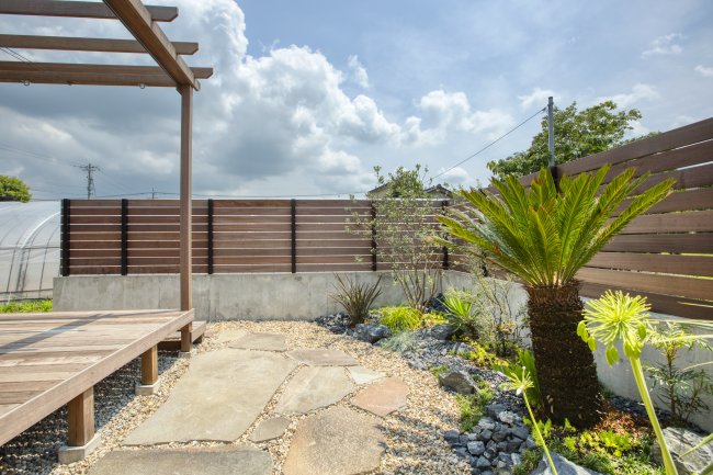 お家のテイストに合ったロックガーデンと、木造作のパーゴラによって、